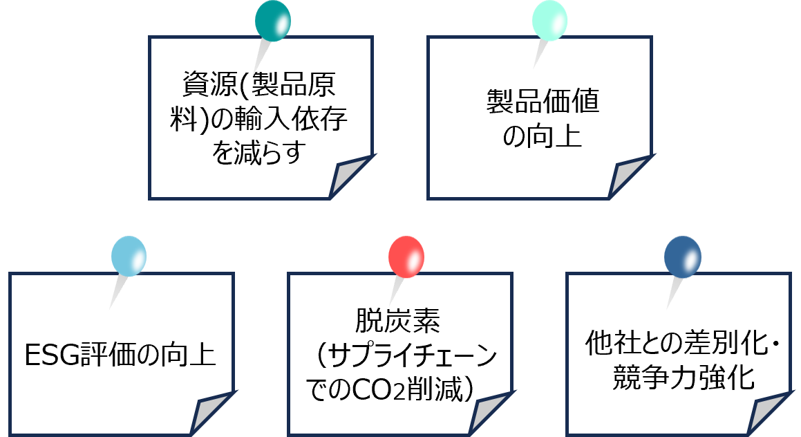 そのような自社製品の循環促進のための積極的な取組みは、サプライチェーンの下流におけるCO2排出量削減、製品価値の向上、ESG評価の向上などに繋がります。