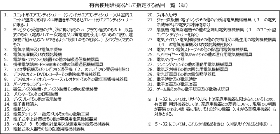 廃棄物を除いて、いわゆる“有価物”となる以下の機器