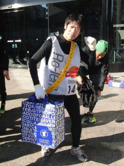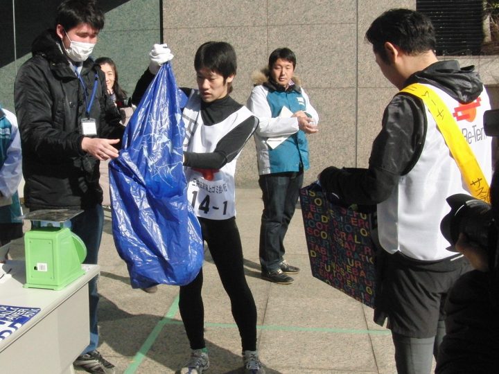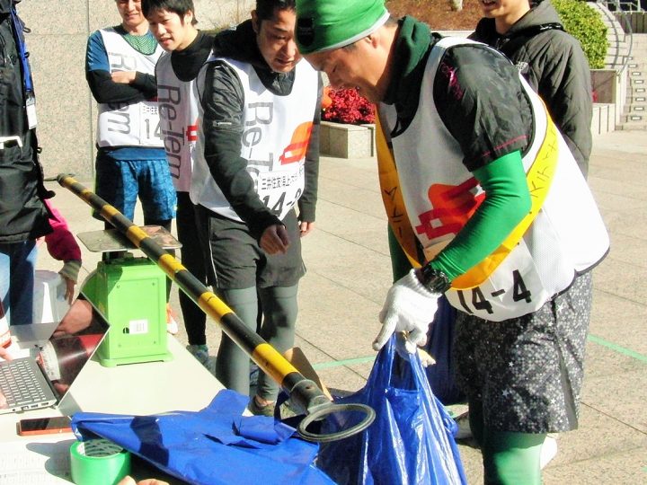 走行距離は一人約2km前後と短かったものの、全速力で走っては急に止まってごみを拾う動作が続くため足腰の体力を奪い、両手に持っているごみは大変重く筋力的にも大変きついレースだったそうです。