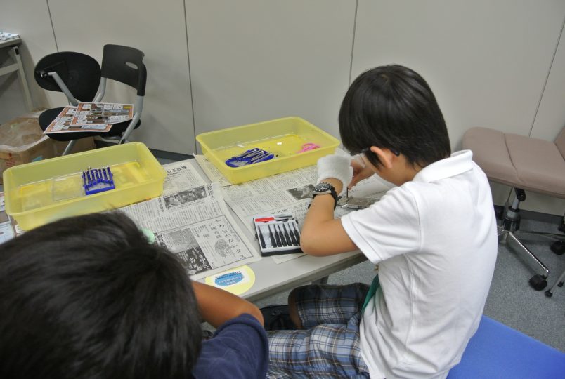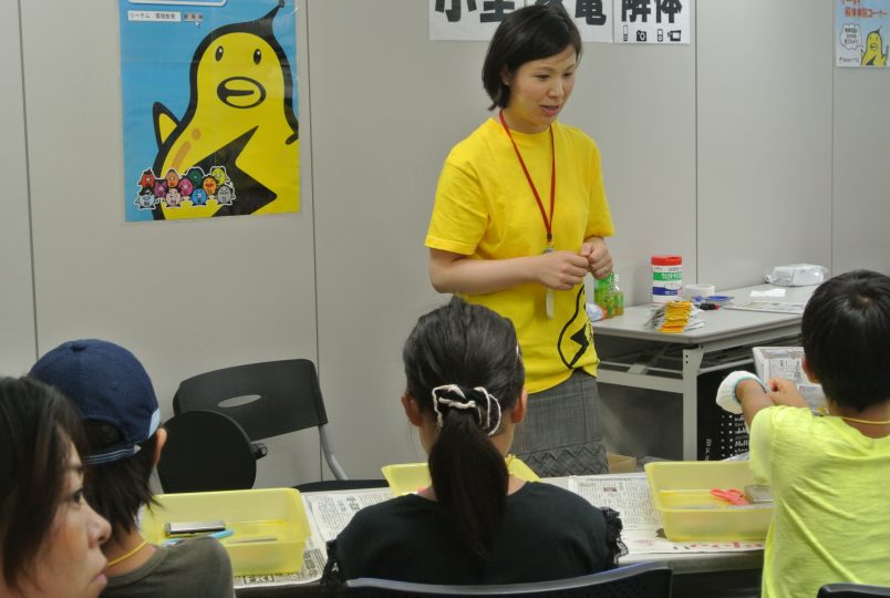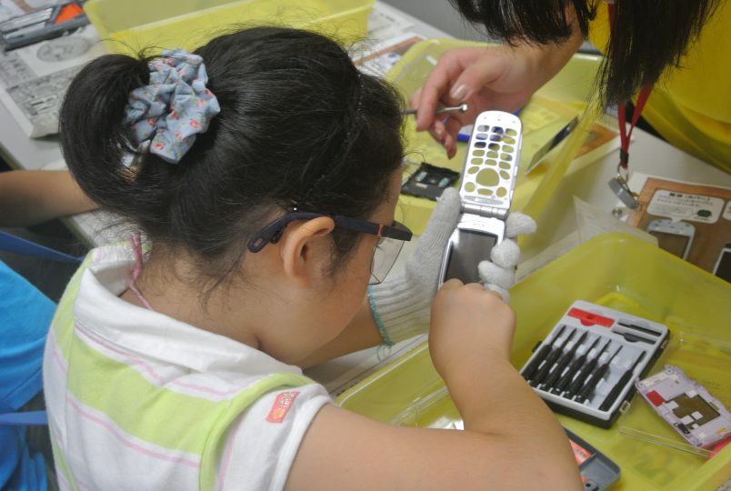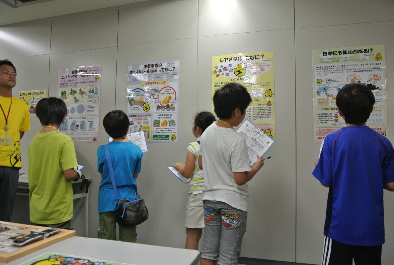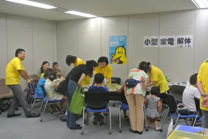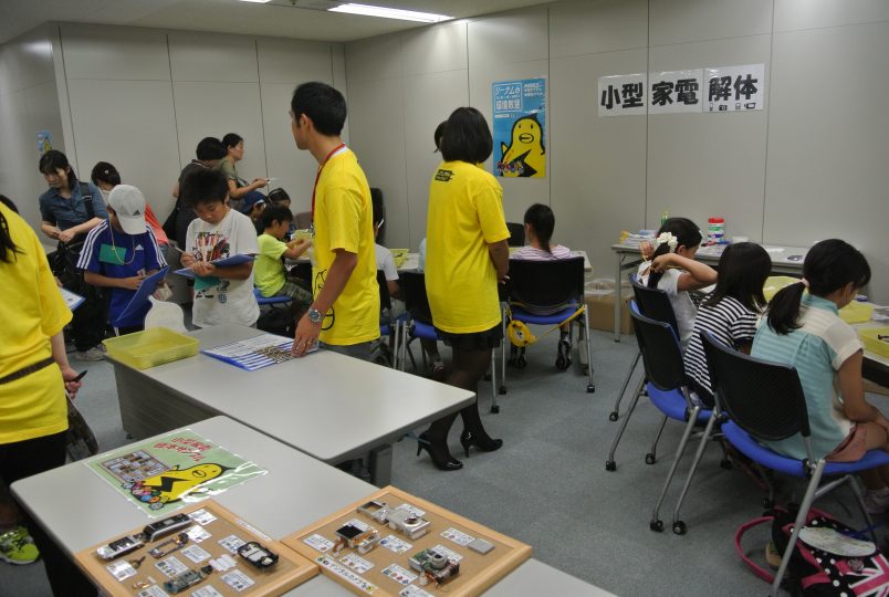 「子ども霞が関デー」が2013年8月7日・8日の2日間 行われ、リーテムは環境省会議室にて小型家電解体教室 を開催しました。 このイベントは1997年より文部科学省が主体となり、 各府省における業務説明や省内見学など、行政への理解 を深め、子どもたちが夏休みに広く社会を知る体験活動の機会となることを目的に実施されています。今年は 省庁全体で約2万2千人の来場がありました。 リーテムは、環境省の依頼により小型家電リサイクル に関するクイズや使用済み携帯電話の解体体験などを 通して、資源リサイクルの大切さを楽しく学べる教室を 実施。多くの子どもたちが参加し大盛況でした。