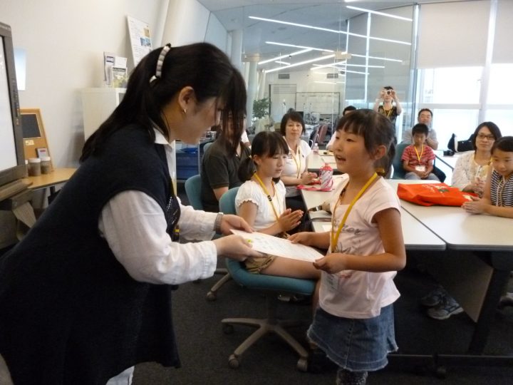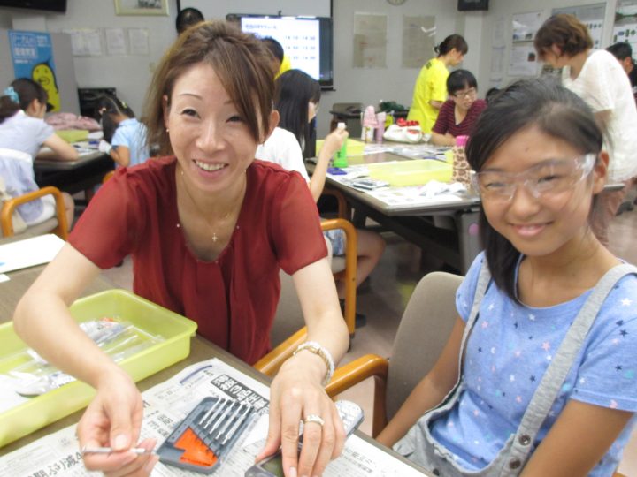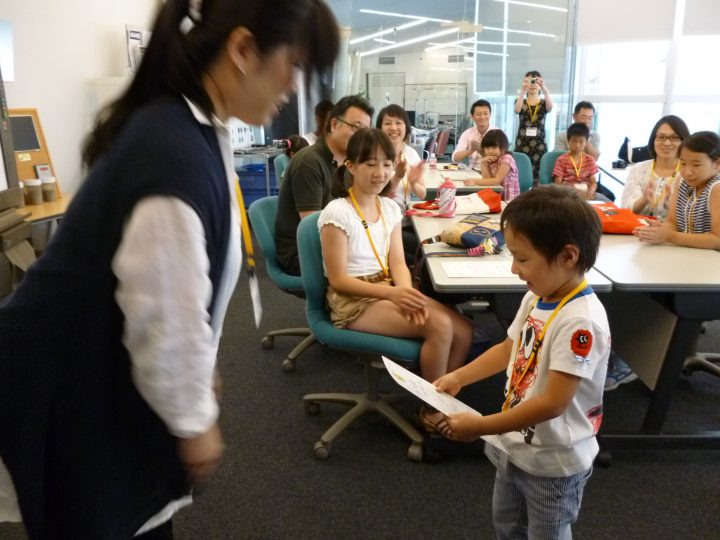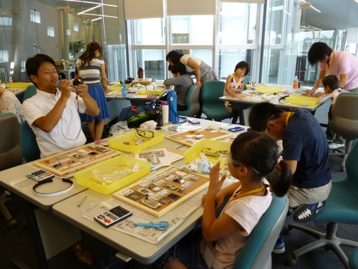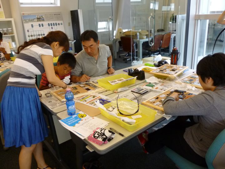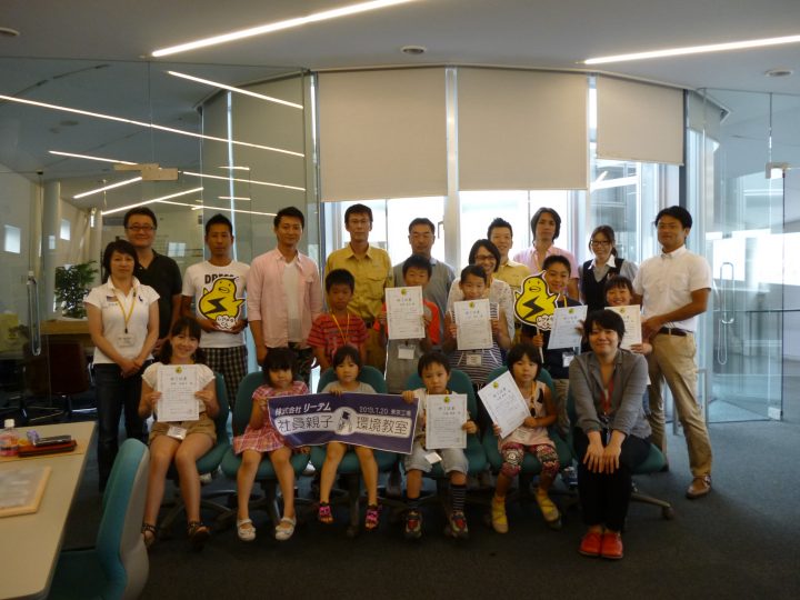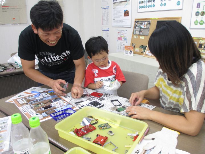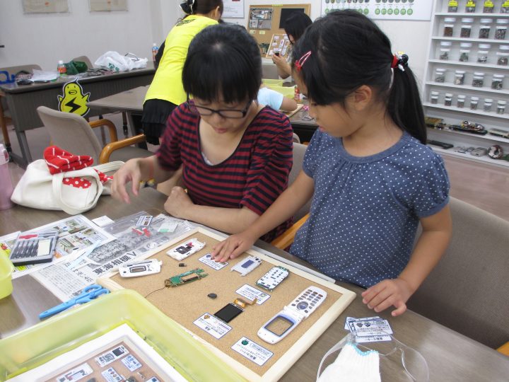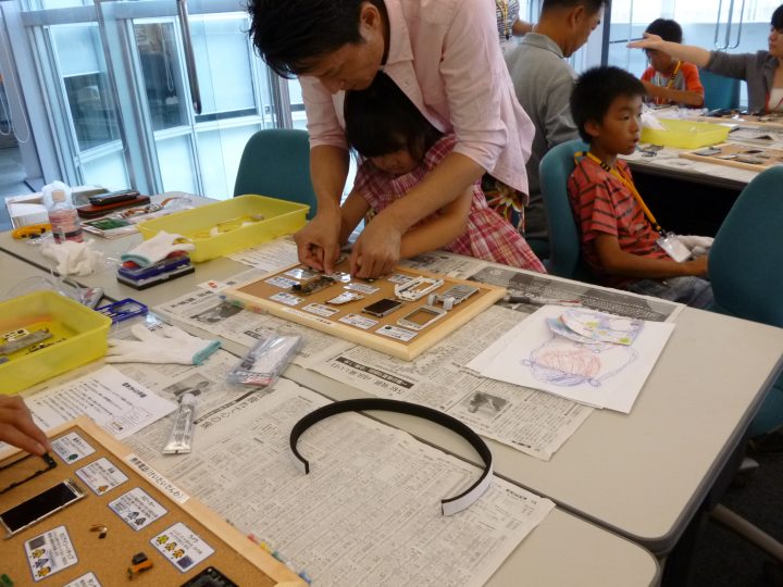 2013年8月に、水戸工場と東京工場で社員の家族を 対象に、職場見学&環境教室を開催しました。「お父さん、 お母さんの職場がどんなところなのか「」金属リサイクルってどういう仕事なのか」をテーマに、日頃はなかなか見ること の出来ない職場を見学し、使用済み携帯電話を自らの手で 解体して資源の大切さを楽しく学んでもらいました。