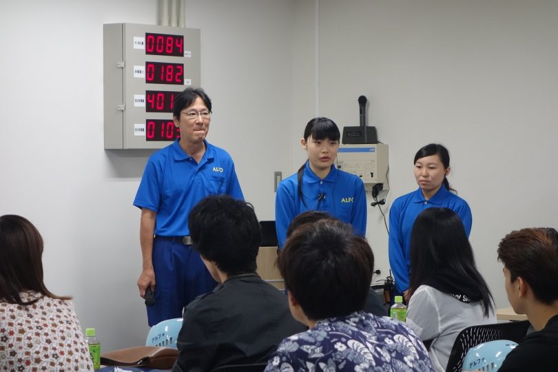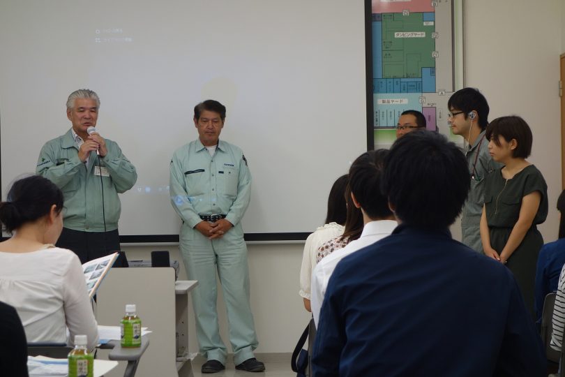 ㈱リーテムでは、会社紹介のDVDをご覧いただき、100年にわたる事業内容や社会貢献などを説明。その後工場見学を行ない、通常の見学対応とは違う社員の目線で作業の様子もお話しました。