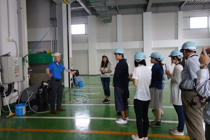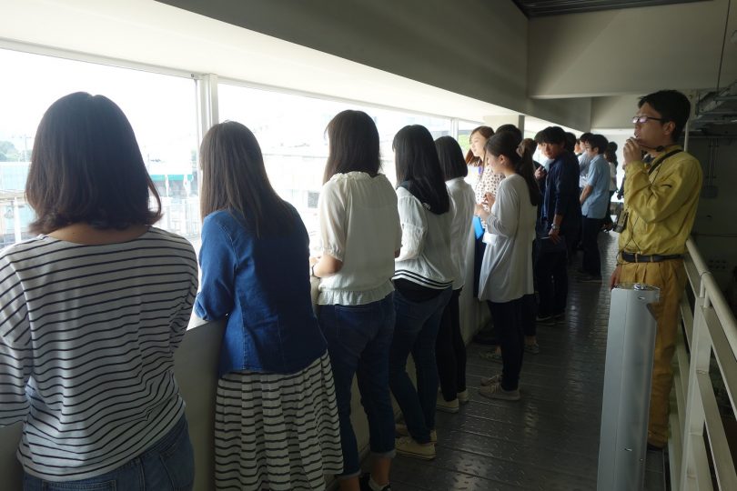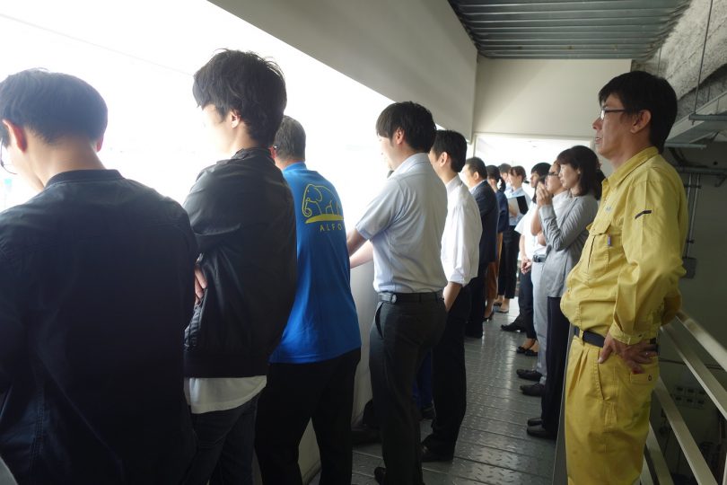 当日は好天に恵まれ、大学生を乗せたバスは東京テレポートを出発し、㈱アルフォ第二工場へ到着。