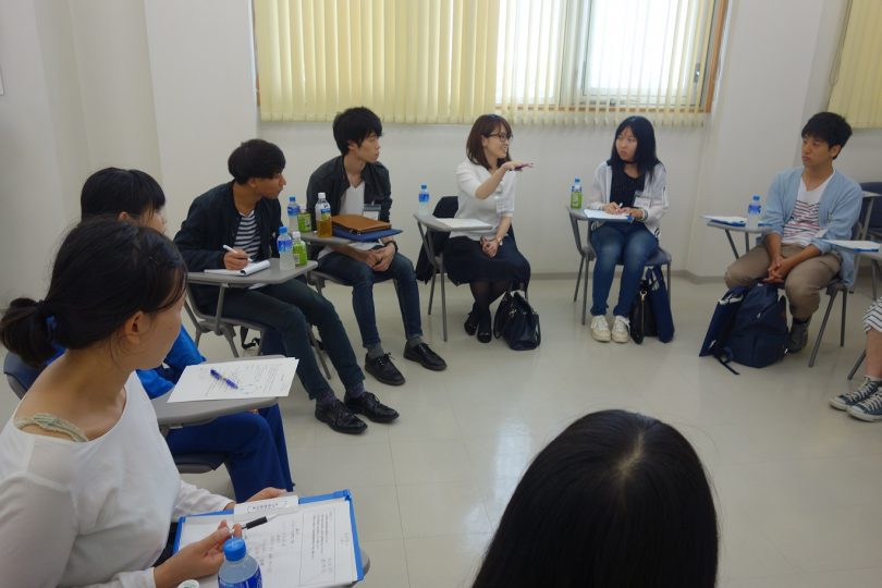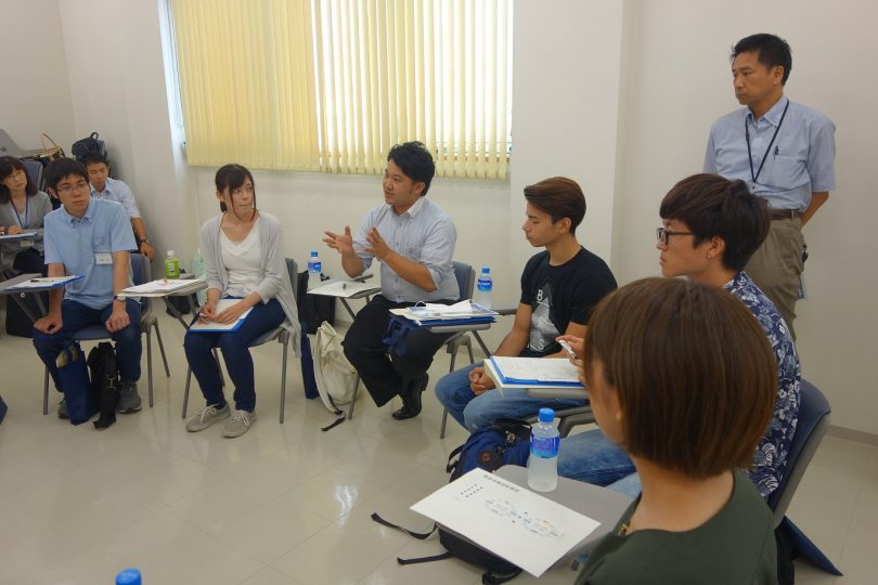 その後2つのグループに分かれ、各社から6名の若手社員が同席して、大学生と活発な意見交換が行われました。