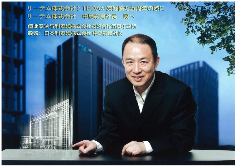 リーテムは、中国天津市にある天津経済技術開発区 (TEDA)にて、エコセンター構想の提案、マテリアルフロー の調査、工業系廃棄物用マニフェストの試験導入などを、TEDAエコセンター(行政機関)と協力して行ってきました。 2013年11月、TEDAエコセンターより5年間の環境協力の功績が評価され、中島彰良代表取締役が「戦略顧問」に 指名されました。