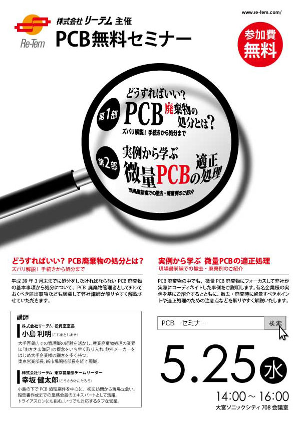 法定期限内に処分をしなければならないPCB廃棄物の基本事項から処分について、PCB廃棄物管理者として知っておくべき届出事項なども網羅して弊社講師がわかりやすく解説いたします。